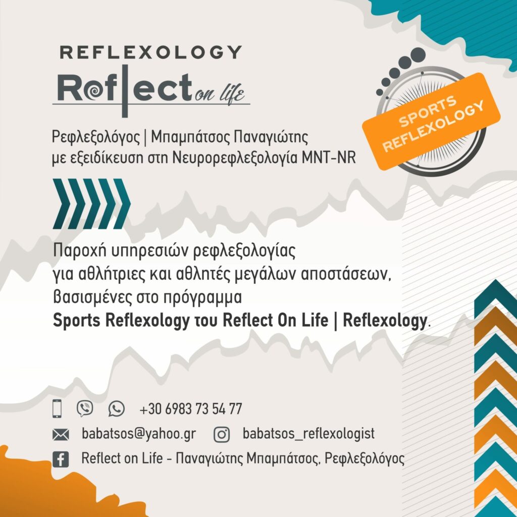 Ο Παναγιώτης Μπαμπάτσος είναι Ρεφλεξολόγος με εξειδίκευση στη Νευρο – Ρεφλεξολογία (MNT- NR International). Το γραφείο Ρεφλεξολογίας Reflect On Life – Reflexology είναι μέλος του Σ.Ε.Ρ (Σωματείο επαγγελματιών Ρεφλεξολόγων) και μέσω του σωματείου μέλος στο RiEN (Reflexology in Europe Nexus).