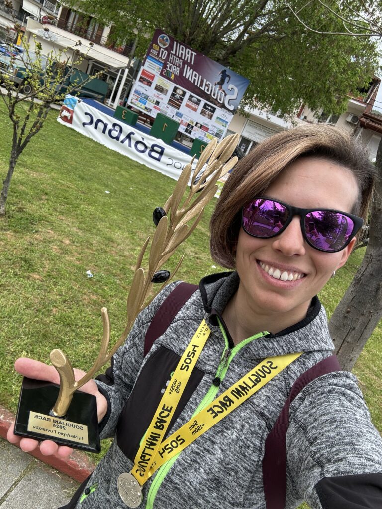Στις 7 Απριλίου συμμετείχα στο Sougliani Race 5km, μία πολύ όμορφη διοργάνωση, εντός και περιμετρικά του Σταυρού Θεσσαλονίκης, με ωραία διαδρομή και θέα στο χωριό και τη θάλασσα. Το μέρος μου είναι οικείο μιας και έχω καταγωγή από χωριό κοντά σε εκείνα τα μέρη κι έτσι δεν αποτελούσε κάτι ξένο η επίσκεψη στο Σταυρό. Στον αγώνα κατέλαβα την 1η θέση στις γυναίκες και την 9η συνολικά. Είμαι πολύ χαρούμενη με αυτήν μου την επίδοση, καθώς αφενός η προπόνησή μου – κακώς – δεν περιλαμβάνει το τρέξιμο, ειδικά μετά από έναν τραυματισμό σε αγώνα στις 10 Δεκεμβρίου, και αφετέρου γιατί αυτός ο αγώνας ήταν ο δεύτερος αγώνας και το δεύτερο τρέξιμο του 2024 συνολικά.