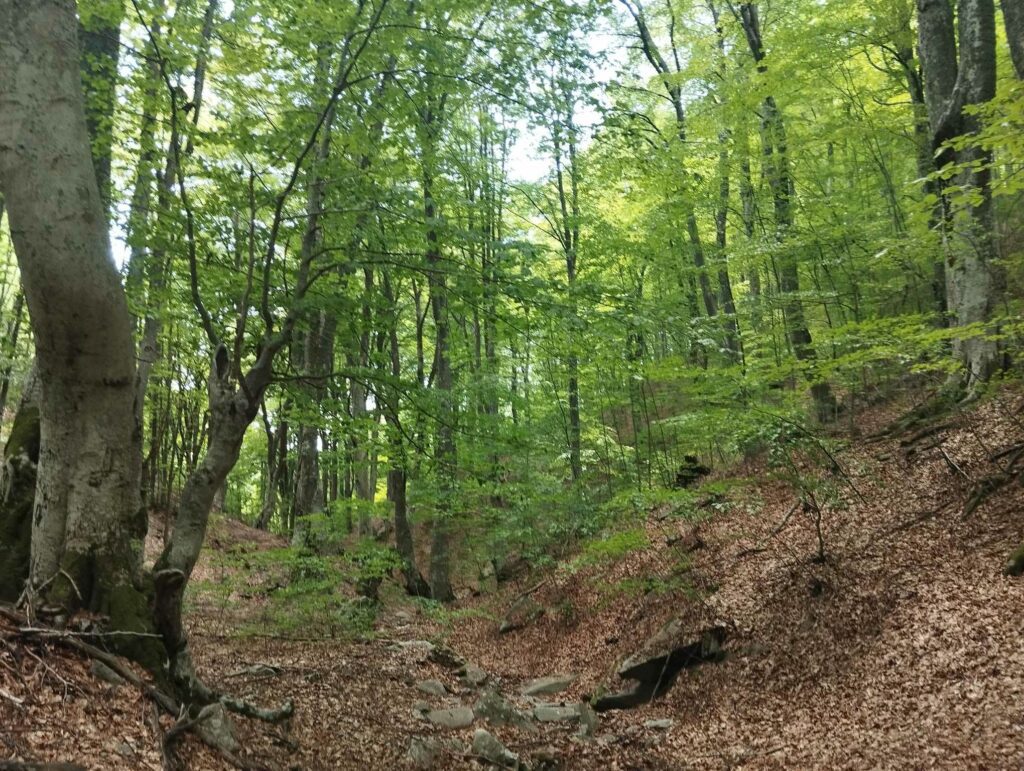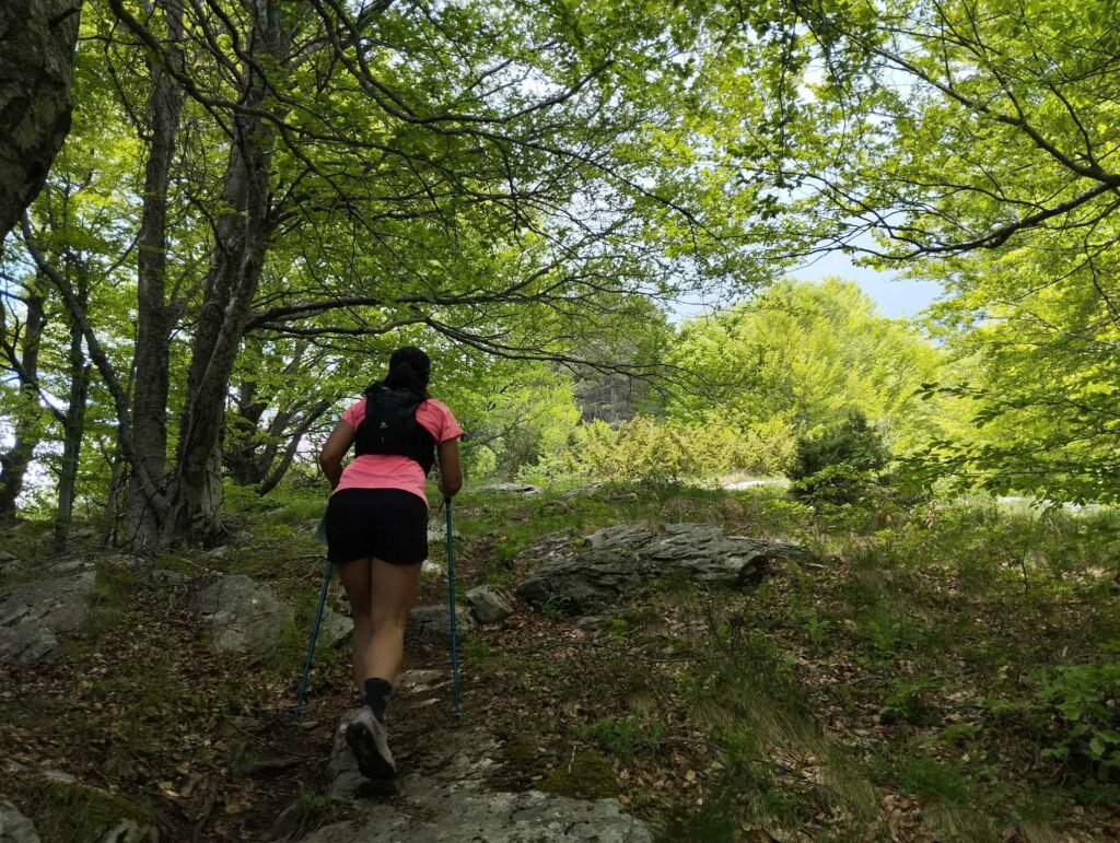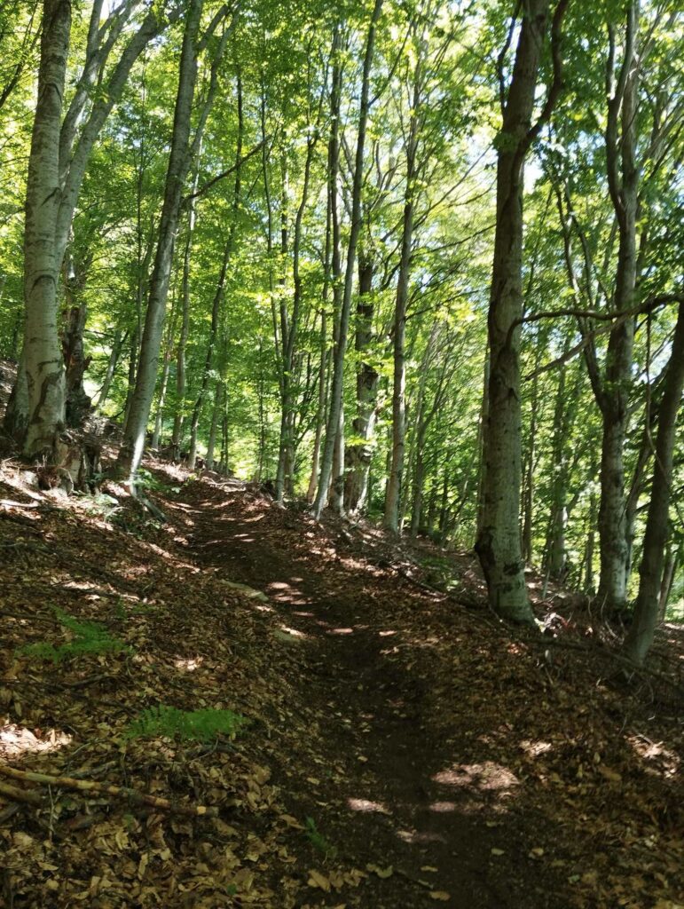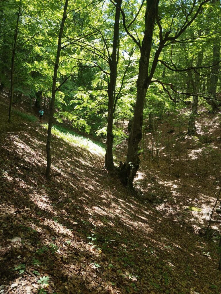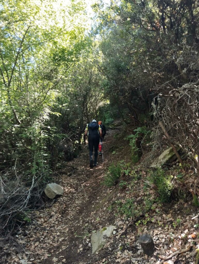Ξεκίνησε η κατάβαση και γρήγορα ξαναμπήκαμε σε κατάφυτα, σκεπαστά μονοπάτια.