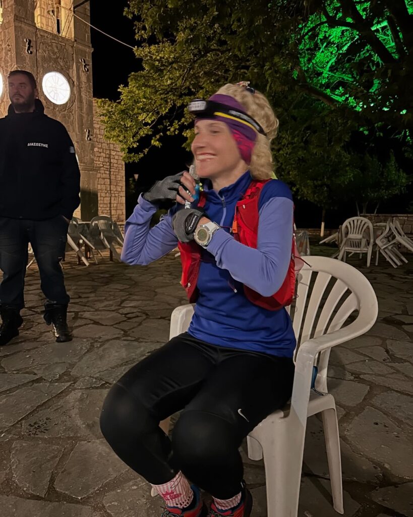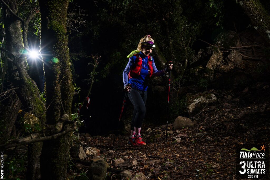 Δυστυχώς λόγω τραυματισμού, ευτυχώς όχι σοβαρού αλλά ικανού για να μην συνεχίσω, απόλαυσα μόνο τα 44χλμ. της διαδρομής μέχρι το χωριό Δάφνος. Η εκκίνηση δόθηκε από το Τείχιο με τα συναισθήματα ανάμεικτα να ριγούν σε όλο σου το κορμί, ένιωθες ανυπομονησία να ξεκινήσει το πολυήμερο ταξίδι, χαρά που βρισκόσουν εκεί, σιγουριά & ασφάλεια για τη διοργάνωση, πάθος να ζήσεις την περιπέτεια που περίμενες καιρό τώρα! Φίλοι που γνώριζες ήδη και νέοι φίλοι πλαισίωσαν αυτό το σκηνικό πολύ όμορφα, μιας και ήμουν η μοναδική γυναικεία συμμετοχή. Τα πρώτα χιλιόμετρα κύλησαν κατηφορικά απολαμβάνοντας τη δύση του ήλιου στα μεγαλειώδη βουνά της περιοχής. Το σκοτάδι έπεσε κι ευτυχώς είχα κοντά μου μια παρέα φίλων από την Κρήτη. Διασχίσαμε όμορφα παραδοσιακά χωριά της Φωκίδας, Παλιοξάρι, Κροκύλειο, Τρίστενο και το χωριό Πενταγιοί (εκεί γεννήθηκε και μεγάλωσε η Μαρία η Πενταγιώτισσα). Στα πρώτα νυχτερινά χιλιόμετρα μοιραστήκαμε και μια ultra στιγμή, με λύκους που νιώσαμε αρκετά κοντά μας.