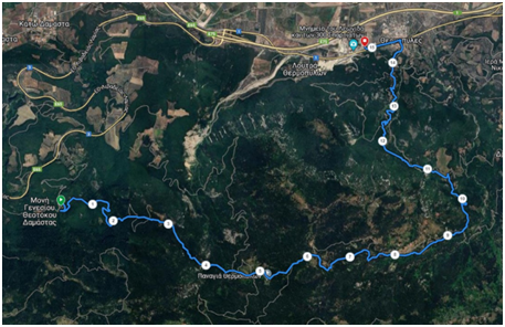 Το συνολικό μήκος της διαδρομής είναι 15,2 χλμ., εκ των οποίων το 80% είναι μονοπάτια και το 20% δασικοί δρόμοι. Η συνολική θετική υψομετρική είναι 510μ. Η εκκίνηση του αγώνα θα γίνει σε υψόμετρο 630μ. δίπλα από την Ιερά Μονή Δαμάστας.