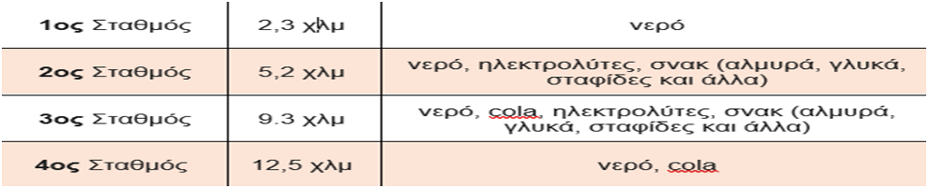 Στη διαδρομή θα υπάρχουν τέσσερις (4) σταθμοί ανεφοδιασμού.