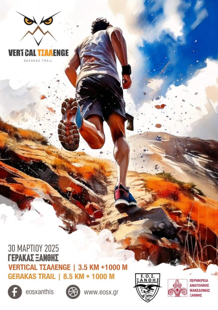 Ο Ελληνικός Ορειβατικός Σύλλογος Ξάνθης (Ε.Ο.Σ Ξάνθης) σε συνεργασία με την Περιφερειακή Ενότητα Ξάνθης, Περιφέρεια Ανατολικής Μακεδονίας και Θράκης, διοργανώνουν το 1ο Vertical Τσαλenge, διεθνή αγώνα ορεινού τρεξίματος «κάθετου χιλιόμετρου» στον Γέρακα Ξάνθης, την Κυριακή 30 Μαρτίου 2025.