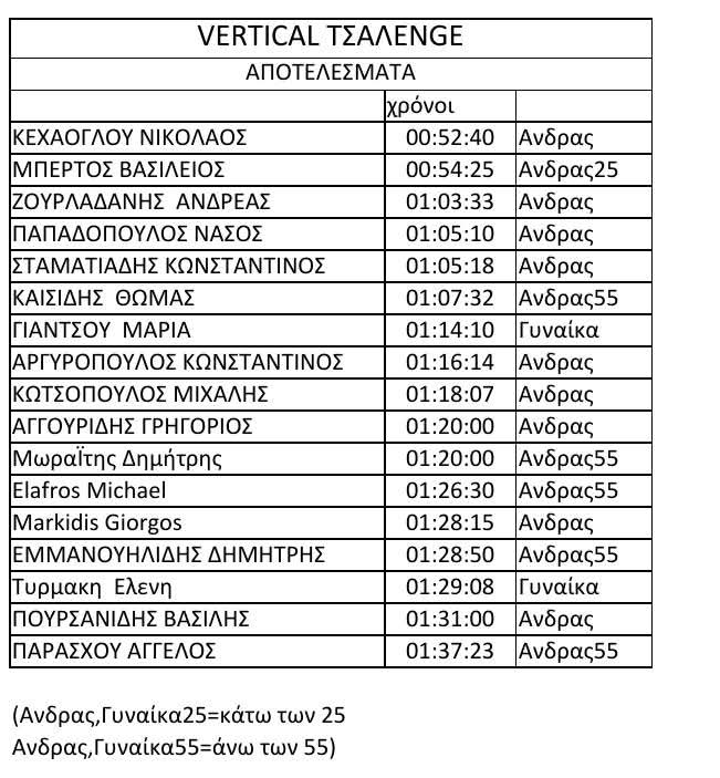 70 αθλητές και αθλήτριες συνολικά στους δύο αγώνες αποδέχθηκαν την πρόκληση να ανέβουν την απαιτητική κόψη του όρους Τσαλ μήκους 3,5χλμ με 1.000υψ. Η εκκίνηση δόθηκε στο χωριό του Γέρακα Ξάνθης. Οι αθλητές του Vertical τερμάτιζαν στην κορυφή, απολαμβάνοντας την εκπληκτική θέα.