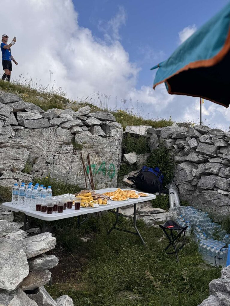 Στην κορυφή περίμενε όλους τους αθλητές ένα ειδικά διαμορφωμένο σκηνικό, με πολύχρωμα σημαιάκια που θύμιζε.. Everest και ένας σταθμός τροφοδοσίας, ένα alpine bar θα λέγαμε, για να τους εφοδιάσει με τα απαραίτητα.